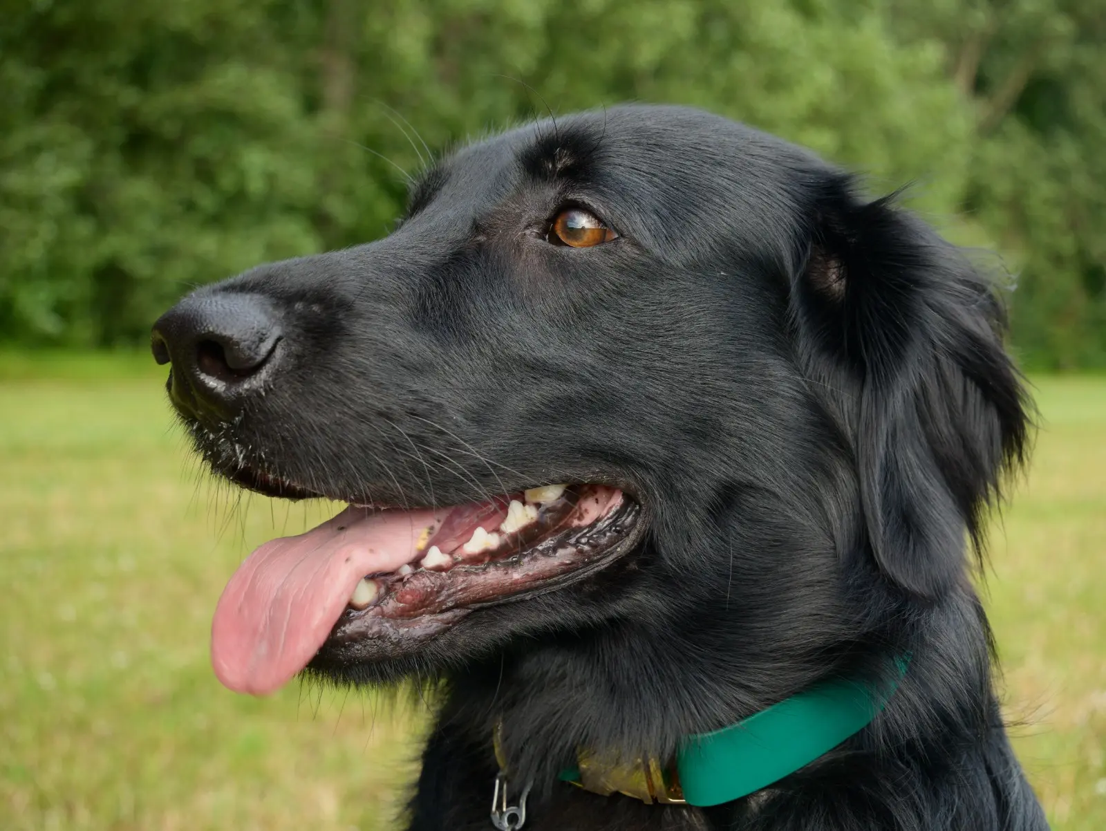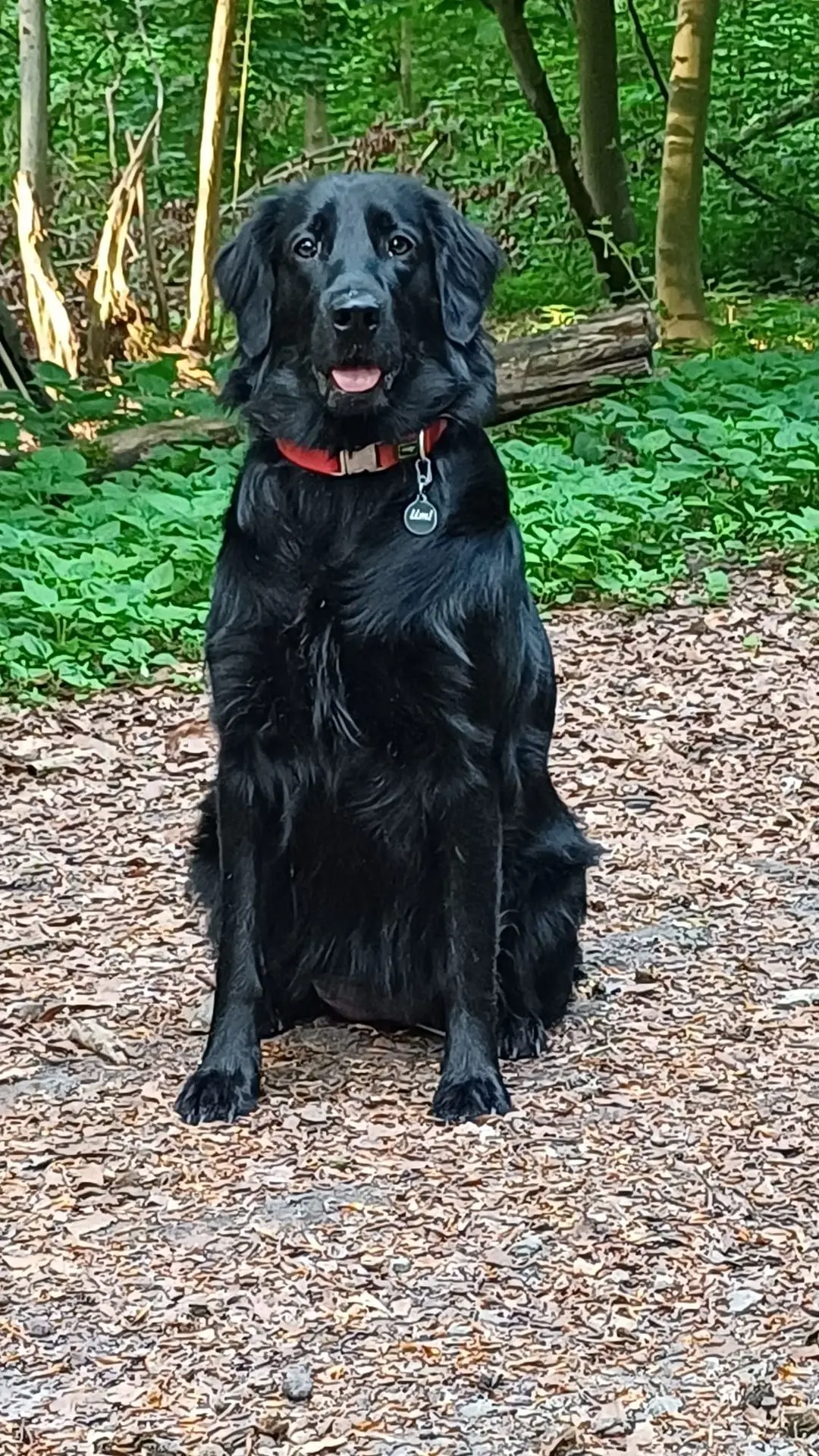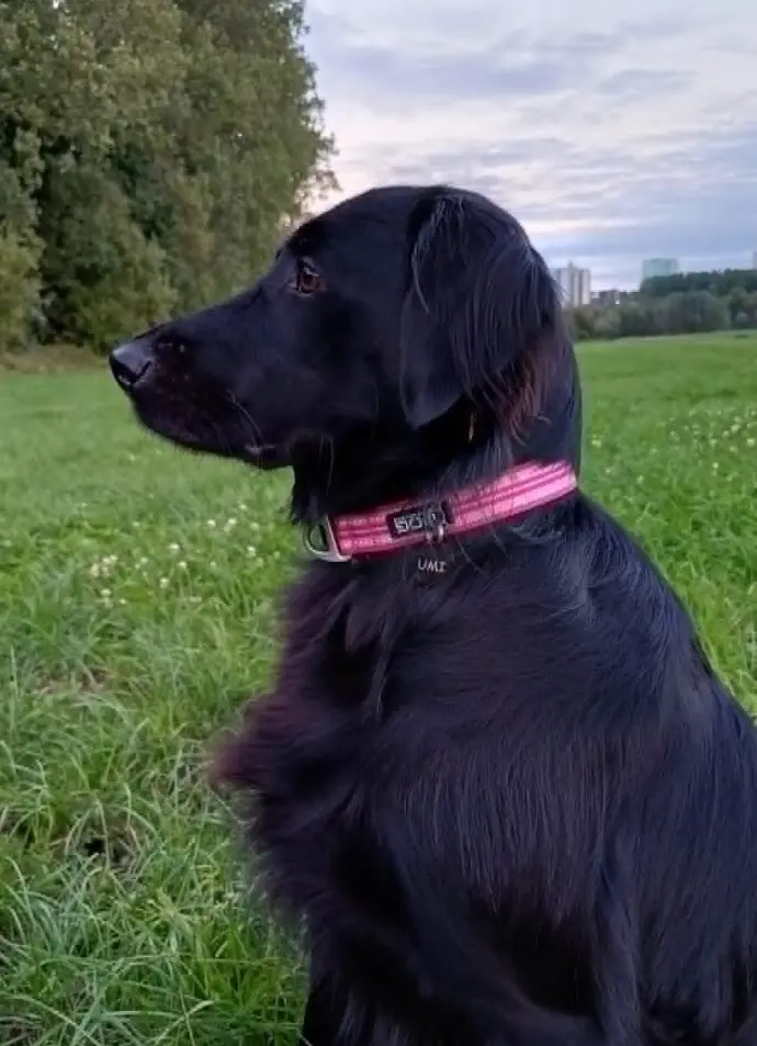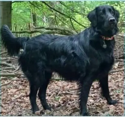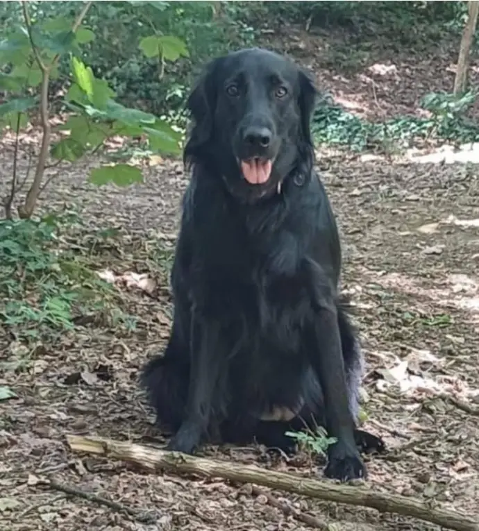 - UMI est un flat-coated retriever de 2 ans, elle est uniformément noire, elle est pucée (ID belge) et stérilisée.