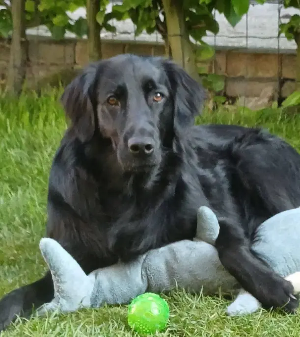 - UMI is a 2-year-old flat-coated retriever, completely black, microchipped (Belgian ID) and spayed.